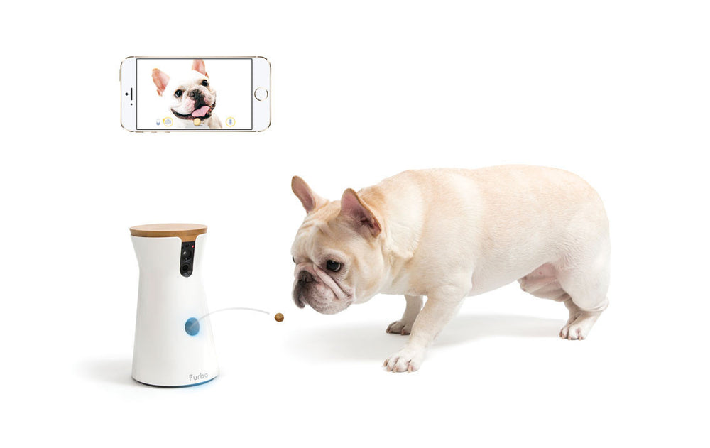 Furbo is the first dog camera designed with an interactive treat popping system, to allow parents and pups to play from anywhere. Parents can simply take their dog's favorite rounded treats, drop them into the top, and watch as their pup chases the treat through the air.